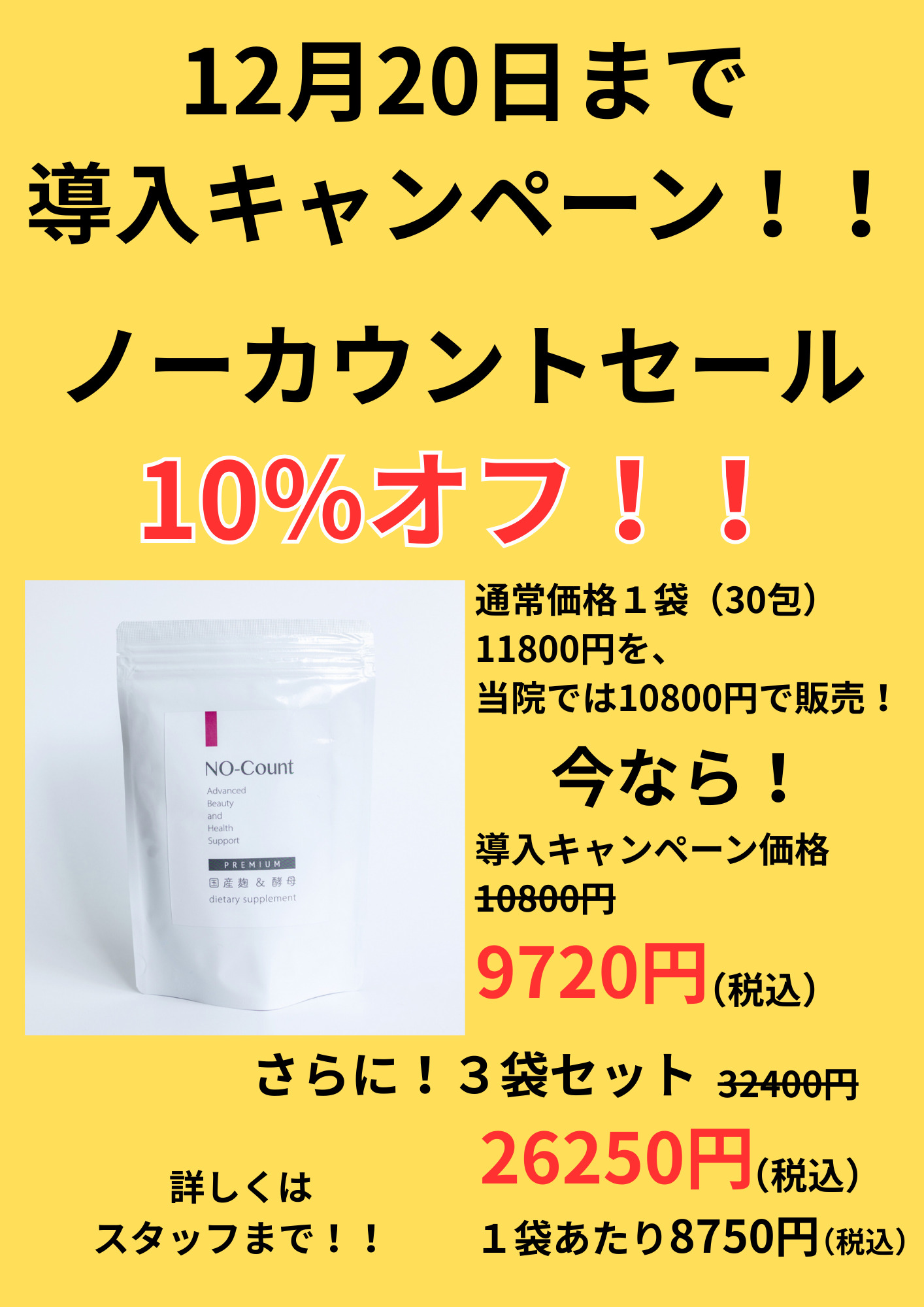 当院ではノーカウントキャンペーン開催中!