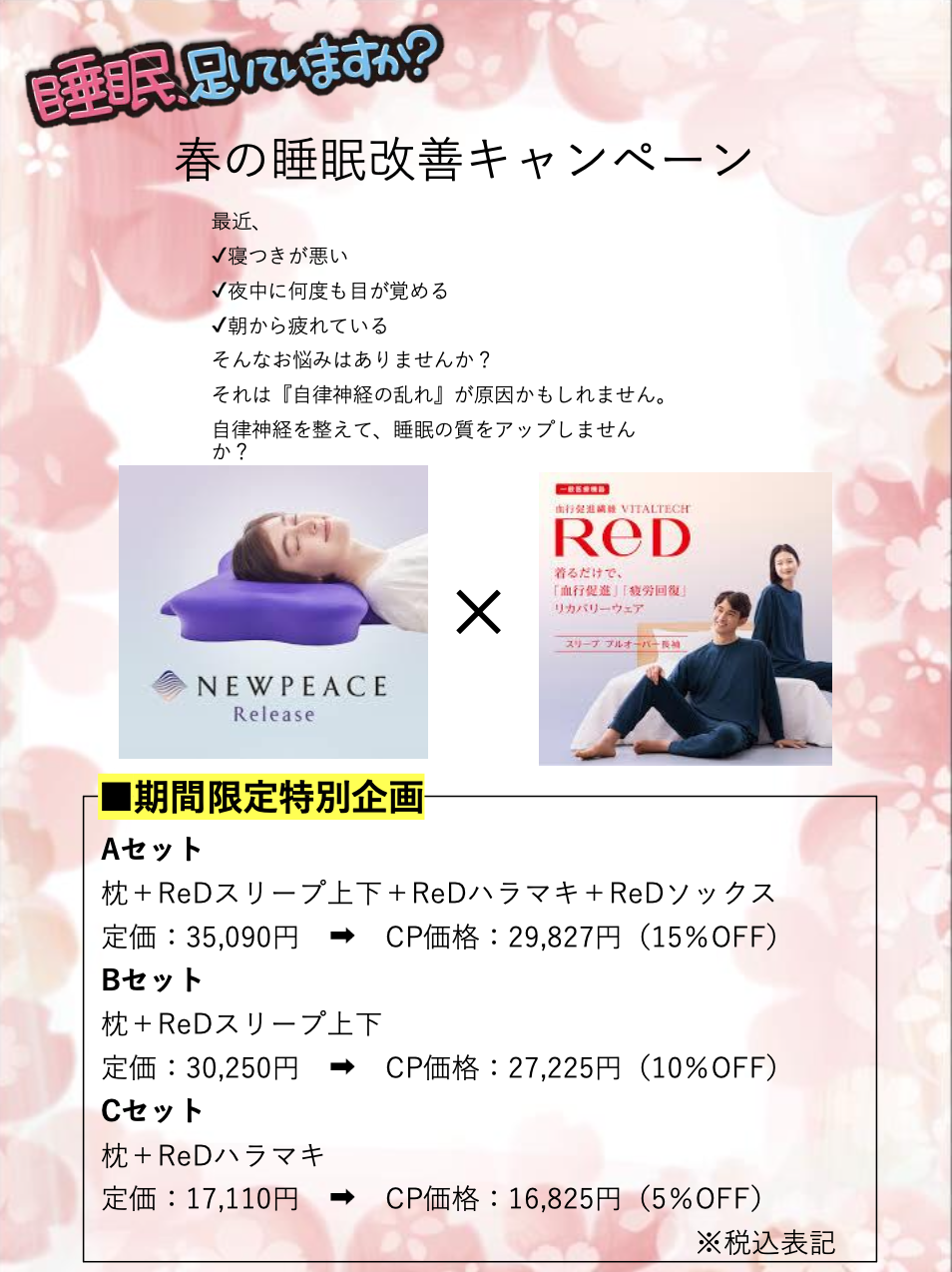 今回の睡眠キャンペーンは、REDのスリープウェアやMTGが取り扱う枕などが、お得なキャンペーン価格でご購入できます。